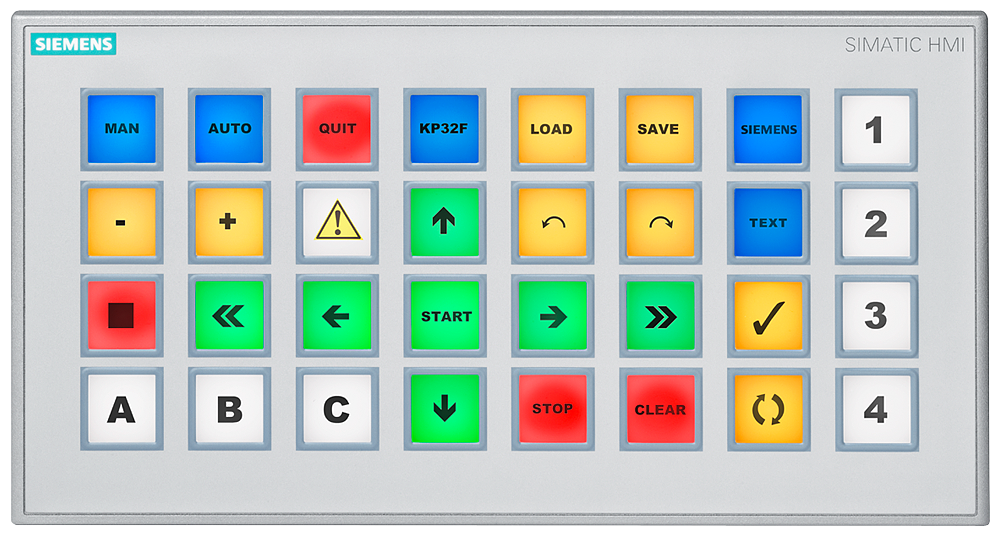 SIMATIC HMI KP32F PN, Key Panel, 32 short-stroke keys with multi-colored LEDs, PROFINET interfaces with PROFIsafe, 16 DI+16 DI/DO, 4 safety DI pins, 24 V DC can be looped through parameterizable as of STEP 7 V5.5 SIMATIC HMI KP8/KP8F and KP32F Key Panels c