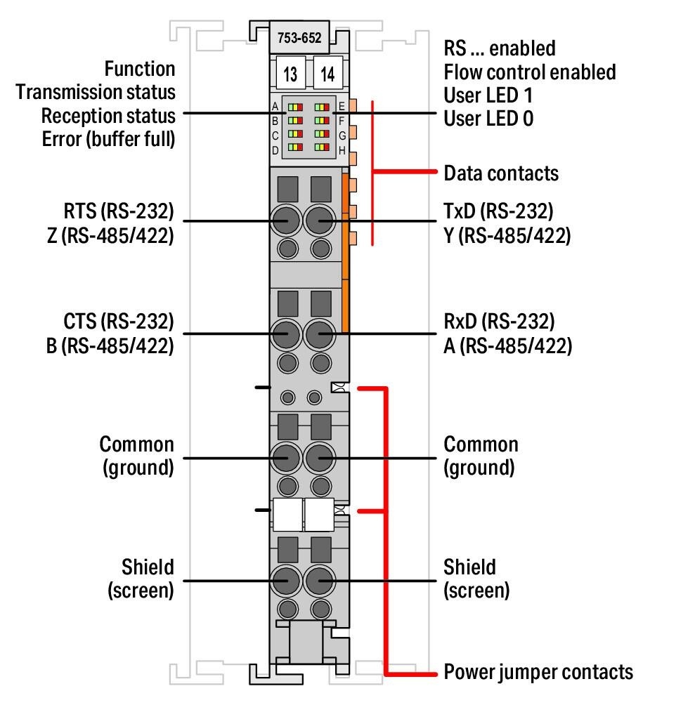 753-652 RS-232/485 Interface RS-232/485 Interface WAGO PLC Materialen WAGO-I/O- Systeem