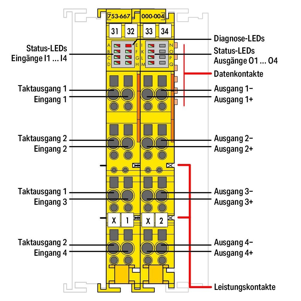 753-667/000-004 Electr. Unit 4FDI/4FDO 24 VDC 2A Electr. Unit 4FDI/4FDO WAGO PLC Materialen WAGO-I/O- Systeem